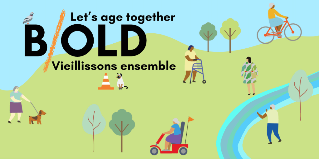 Welcome to B/OLD: Let’s Age Together! B/OLD is a series of free events that are designed to explore issues related to aging in an ever-changing world. From panels, to workshops, we create conversations about aging and explore topics such as care, age friendly cities, mistreatment and digital technologies. We invite researchers, community organizations, and community members to participate in a variety of creative activities that challenge stereotypical understandings of age and aging.